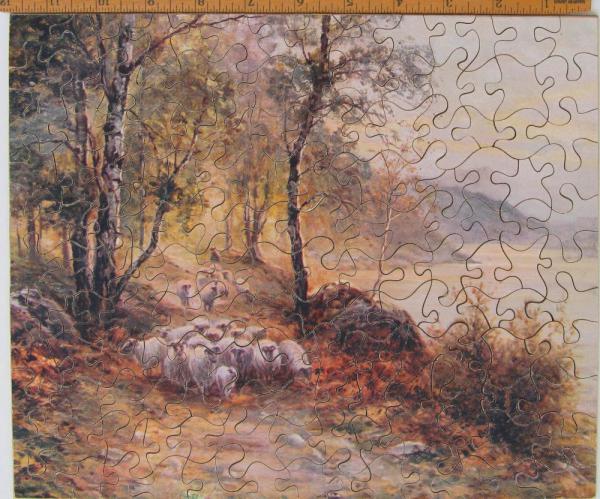 Catalog Code: 2- 20887Description: Distinctive British cut; some warping of larger pieces. General InformationDate: 1930sWidth: 12"Height: 10" Pieces InformationPieces: 150Pieces Replaced: 1Figures: 0Styles: slanted knobs Topics: countrysidesheepSale Status: Sold