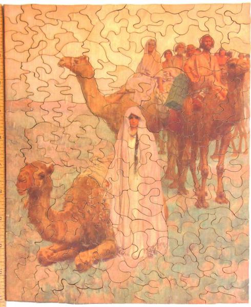 Catalog Code: 1- 1560Description: Soft colors General InformationDate: 1909c.Width: 9"Height: 11" Pieces InformationPieces: 230Pieces Replaced: 1Figures: 0Styles: push fit Topics: camelsdesertSale Status: Sold