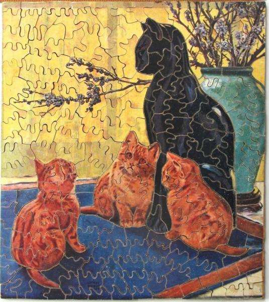 Catalog Code: 2- 02403Description: Excellent color line cutting.General InformationDate: 1930sWidth: 9"Height: 11"Material: plywoodContainer: replaced Pieces InformationPieces: 250Pieces Replaced: 1Colorline: yesInterlock: semStyles: long round knobs1-by-1sem-lk Topics: catsSale Status: Sold