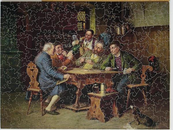 Catalog Code: P- 0857Description: 33 figurals; cut by #753; sharp colors; top conditionGeneral InformationDate: 1930/40Width: 16"Height: 12"Material: plywoodContainer: box Pieces InformationPieces: 301Colorline: yesFigures: 33Interlock: yesStyles: round knobs Topics: mentavernSale Status: Sold