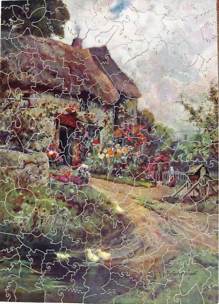 Pastime puzzle cut by #1, interlocking, cut along color lines with 24 figure pieces.  Artist is Alfred de Breanski, Jr. (English, 1877-1957