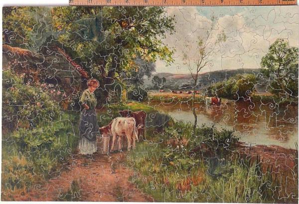 Catalog Code: P- 0939Description: 31 figurals; nice curl knob cutting General InformationDate: 1920/30Width: 16"Height: 10" Pieces InformationPieces: 250Pieces Replaced: 3Figures: 31Styles: curl knobs Topics: farmwomencowsSale Status: Sold