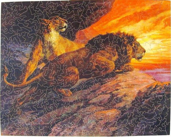 Catalog Code: P- 748Description: #763. 55 figure pieces (unusually high for Pastimes). Great colors; terrific scene! Artist is G. E. Dillworth. General InformationArtist: G. E. DillworthMaker: Parker BrothersSeries: PastimeDate: 1930'sWidth: 20"Height: 16"Material: plywoodContainer: box Pieces InformationPieces: 400Pieces Replaced: 2Colorline: yesFigures: 55Interlock: yesStyles: ft knobs Topics: lionssunsetSale Status: Not for SaleCollection: Pastime Puzzles
