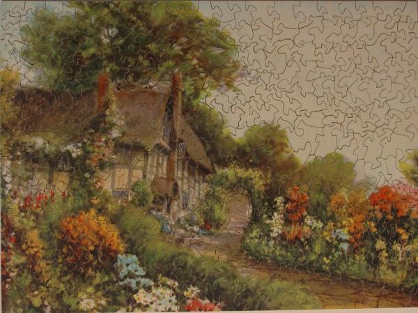 Catalog Code: JS- 348Description: Earlier, better cut Straus puzzleGeneral InformationDate: 1930sWidth: 16"Height: 12"Material: plywoodContainer: box Pieces InformationPieces: 300Colorline: noInterlock: yesStyles: slanted knobs Topics: flowersthatched cottageSale Status: Sold