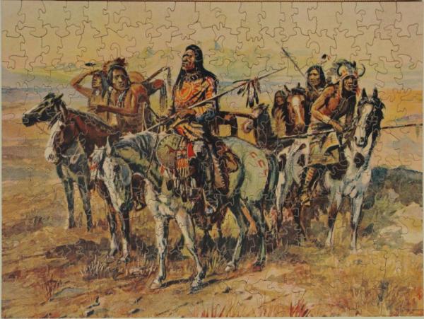 Catalog Code: 2- 20802Description: Excellent colors, puzzleGeneral InformationDate: 1930sWidth: 14"Height: 10"Material: plywoodContainer: box Pieces InformationPieces: 200Colorline: noInterlock: yesStyles: earlet knobs Topics: Native AmericanshorsesWesternSale Status: Sold