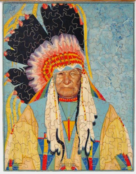Colorful, quality puzzle.  Artist specialized in realistic portraits of Native Americans.