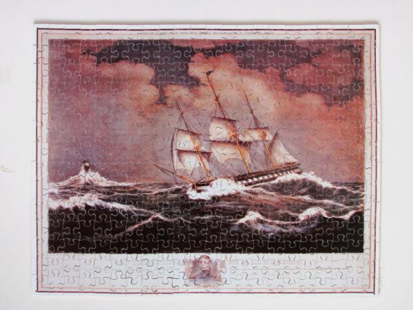 Catalog Code: 5- 5171Description: Top condition. Description of scene on box. Loose cut.General InformationDate: 1980/90Width: 17"Height: 13"Material: plywoodContainer: box Pieces InformationPieces: 308Colorline: noInterlock: yesStyles: round knobsstrip Topics: warshipSale Status: Sold