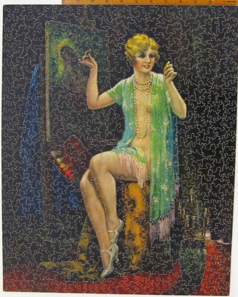 Catalog Code: 2- 20959Description: Very well cut Four-O-Craft puzzle from San Francisco, CA in 1930's. Thick plywood, interlocking, cut along color lines with many deceptive edges. Tight lock. Unknown artist. General InformationMaker: Four-O-Craft PuzzlesSeries: Four-O-CraftDate: 1930'sWidth: 16"Height: 20"Material: plywoodContainer: box Pieces InformationPieces: 669Colorline: yesInterlock: yesStyles: square knobs Topics: womenSale Status: For Sale