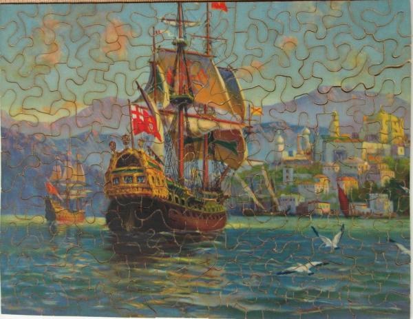 Gorgeous galleon scene. Artist probably R.Atkinson Fox who did similar scenes.