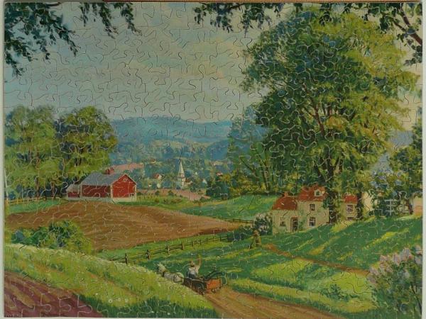 Catalog Code: JS- 335Description: Top condition; very nice sceneGeneral InformationDate: 1950/60Width: 16"Height: 12"Material: plywoodContainer: box Pieces InformationPieces: 340Colorline: noInterlock: yesStyles: round knobsearlet knobs Topics: countrysidefarmSale Status: Sold