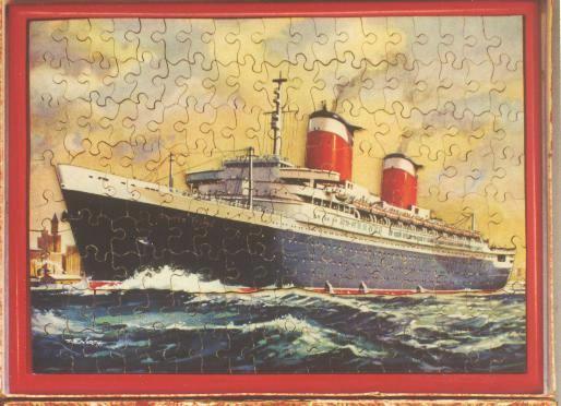 Silhouette of liner is double thickness for 3-D effect.  Another lousy photo from my early days of collecting-too much brown and not enough blue!