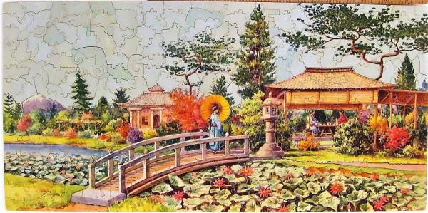 Pastime puzzle cut by Parker Brothers' cutter #722. Interlocking, cut along color lines with 30 figure pieces. Artist is John Wright. Lovely scene but discolored pieces have been partially muted; price reduced.