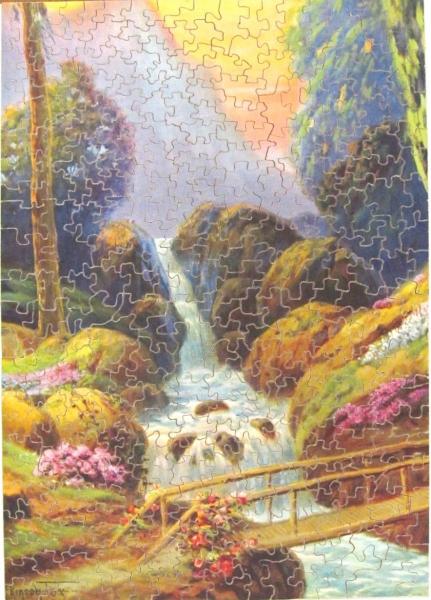 Catalog Code: 2- 21023Description: Beautiful picture by well known artist, R. Atkinson Fox. Blue Ribbon puzzle from Madmar Quality Co. General InformationArtist: R. Atkinson FoxMaker: Madmar Quality Co.Series: Blue RibbonDate: 1930/40'sWidth: 11"Height: 16"Material: plywoodContainer: box Pieces InformationPieces: 300Pieces Replaced: 2Colorline: noInterlock: yesStyles: earlet knobs Topics: waterfallsbridgeSale Status: For Sale