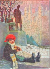 Parker Brothers, a large game manufacturer in Salem, MA from the 19th. century, didn't get started in the puzzle business until late in 1908. Almost immediately, its sales of puzzles, especially its top line, Pastime, took off and the Company ceased making games entirely in 1909, shifting all its facilities to the production of hand cut wood puzzles. During much of that year, the Company had 225 puzzle cutters turning out 15,000 puzzles per week! Over the next 3 years they adopted several techniques which made their puzzles into the best of the commercially cut puzzles for the next 50 years. They adopted the prevailing style of color line cutting, mainly for the larger color areas. Within color areas, they incorporated numerous pieces shaped like recognizable objects such as silhouettes of animals, flowers, letters, numbers and geometric shapes which we call "figure pieces". Their standard was 12 figure pieces per 100 puzzle pieces. Although figure pieces had been employed before in puzzles, the Company was able to patent the idea in 1917 (they never tried to enforce it) and supplied the cutters with patterns of standard figure pieces. Between the figure pieces they cut enough loops and locks to supply clues to the assembler as well as make the puzzle more interlocking. To support these cutting techniques they used sturdy 3-ply wood rather than solid wood of that era. While most of their puzzles were commercially cut for stores and for their extensive sales catalogs, they did accept special orders from individuals. In the 1920's the Company made a 10,000 piece puzzle from a 5' by 7' poster of West Point for New York's Oneida Colony, still on display at the Mansion House in Oneida, NY. The Company hired only women to cut puzzles; the common rationale being men lacked the manual dexterity needed to cut small pieces, and most women already knew how to use sewing machines. But probably the real reason was that they could pay the women (called "the Pastime girls") much lower wages than men in the Salem area. They probably were able to "get away with this" because they ran the department like a craft shop in which each worker had autonomy and control. The best cutters would make their own designs and were able to cut some of the best puzzles made during the first half of the 20th century. All cutters were expected to cut at least 1400 pieces per day. The Company distributed its Pastime puzzles nationwide by mail order direct to the customer and through department and stationary stores, as well as through branches in London and Paris. By 1958 the Company had closed down its Pastime line. For pictures of more Pastime puzzle, see: Ludovici's Dickens Coaching Puzzles and Opera Scenes Puzzles sections. Also, most of the other special collections display some Pastime puzzles. For more information on Parker Brothers and Pastime puzzles, see ch. 3 of Anne Williams' book which is the source of the above information: "The Jigsaw Puzzle: Piecing Together a History", Berkley Books, div. of Penguin Books, New York, (2004). To date Pastime puzzles, look inside the box cover for the label which often gives a date in precise numbers. Failing that, use the locations listed on the box to approximate the dates: