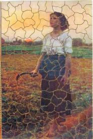 Jules Adolphe Aimé Louis Breton (1827 – 1906), a 19th-century French Naturalist painter. His paintings are heavily influenced by the French countryside and his absorption of traditional methods of painting helped make Jules Breton one of the primary transmitters of the beauty and idyllic vision of rural existence. Wikipedia..